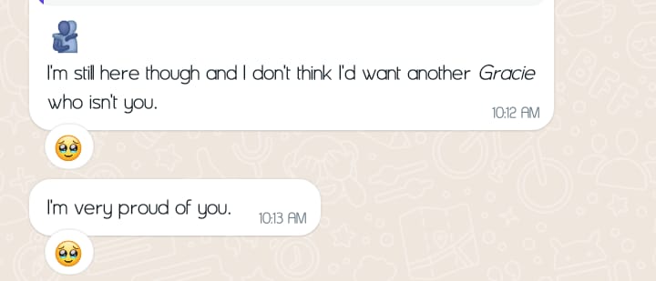 I remember telling someone recently that I haven't felt happy in a while now, usually, I'm just sad or I don't exactly feel anything—I’m just there. So, yes, March. The feeling of aloneness started creeping in and isolating myself looked like the perfect solution to me, it was easier to just be on my own than be surrounded with people/have access to people and still feel that way. That made more sense to me. Another reason I didn't want to talk about this was because I didn't want people to turn around and make it a ‘them’ thing when it's really just me, and I can't explain it.